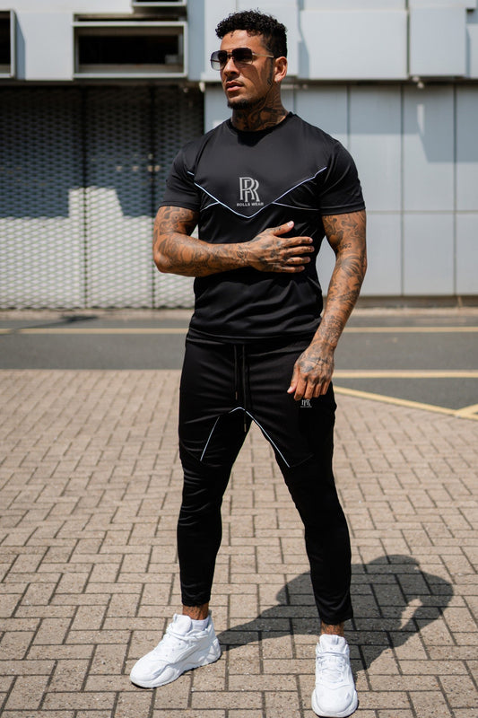 Rolls Black Spandex Dri Fit Grey Panel Cargo Tracksuit Level up your streetwear and training...