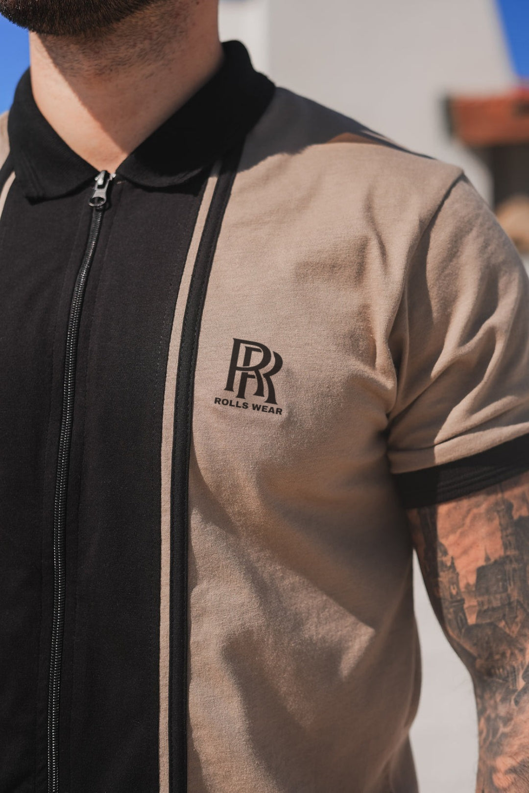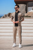 The Rolls Beige Logo Stripes Tracksuit blends classic style with a modern edge, making it a must-have for effortless streetwear. The beige t-shirt, crafted from 100% cotton, features bold black contrast logo stripes, giving it a sleek and stylish appeal. The matching trousers, made from a cotton-elastane blend, provide comfort and flexibility, with black side stripes adding a sporty touch.